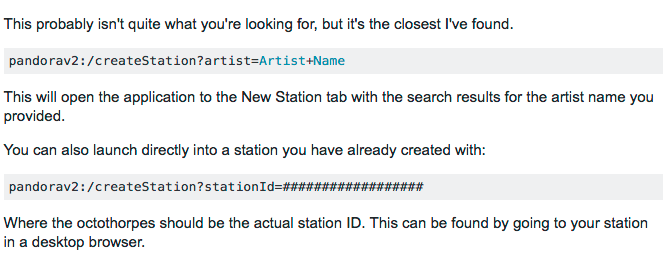Question about using Pandora to open a specific channel. Example, my station is named Eminem Radio. Can I directly launch that station using the pandora://channel_name code? How would I do that? Thanks.